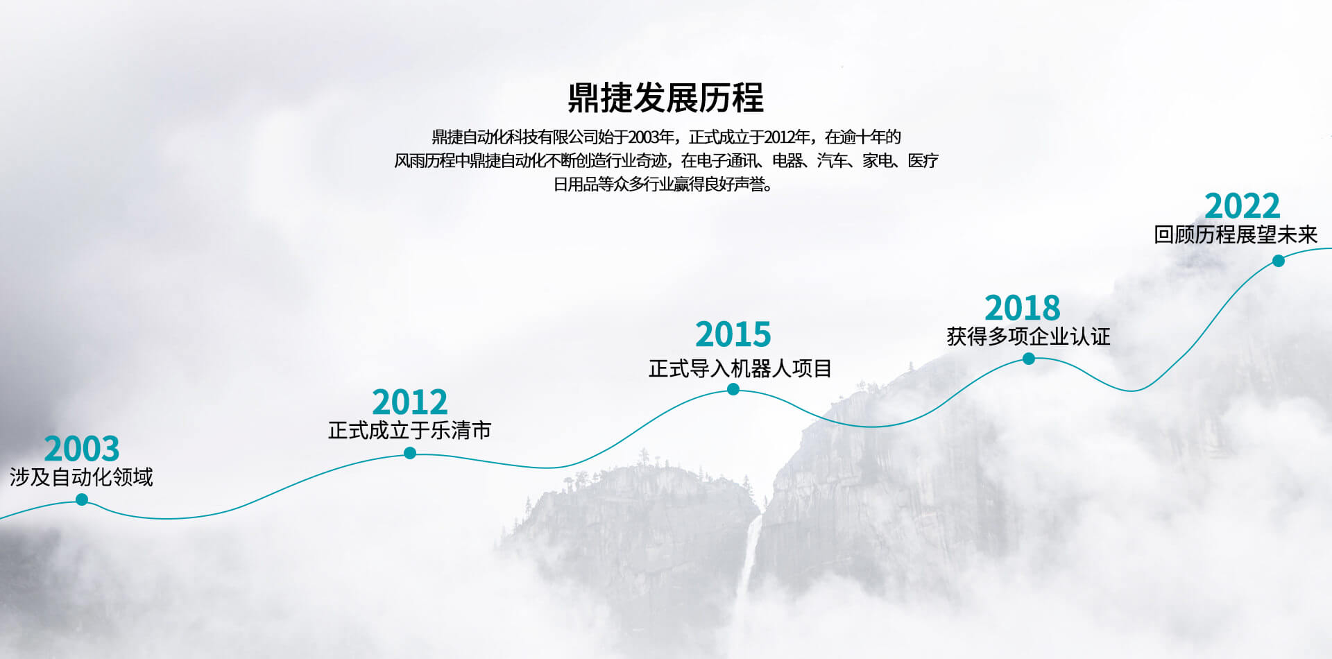 公司始于2012年,在逾十年的風(fēng)雨歷程中,不斷創(chuàng)造行業(yè)奇跡,在電子通訊、電器、汽車、家電、醫(yī)療、日用品等眾多行業(yè)贏得良好聲譽(yù)。公司坐落于浙江省樂清經(jīng)濟(jì)開發(fā)區(qū),現(xiàn)有人員63人,擁有經(jīng)驗(yàn)豐富的工程技術(shù)研發(fā)團(tuán)隊(duì)11人,其中高級(jí)工程6人,具備本科以上學(xué)歷高級(jí)工程人員比例78%;同時(shí)鼎捷自動(dòng)化在蘇州,東莞等地設(shè)立分公司以服務(wù)目標(biāo)市場(chǎng)客戶,目前鼎捷自動(dòng)化已經(jīng)為下客戶提供配套自動(dòng)化解決方案:泰科、安費(fèi)諾、莫士、華為、中興、普聯(lián)、智英、意華、德豐、公牛、萬事達(dá)、華豐、飛雕、普思、冠聯(lián)、俊朗松田、進(jìn)聯(lián)、高正、盛凌等。鼎捷自動(dòng)化專業(yè)從事連接器、開關(guān)及相關(guān)電子、電器、五金、塑膠產(chǎn)品組裝自動(dòng)化定制、設(shè)計(jì)、制造、銷售。2012年,鼎捷自動(dòng)化正式導(dǎo)入機(jī)器人應(yīng)用項(xiàng)目,可為各類客戶提供電子、電器、汽車、五金、塑膠等集成自動(dòng)化智能組裝系統(tǒng)。